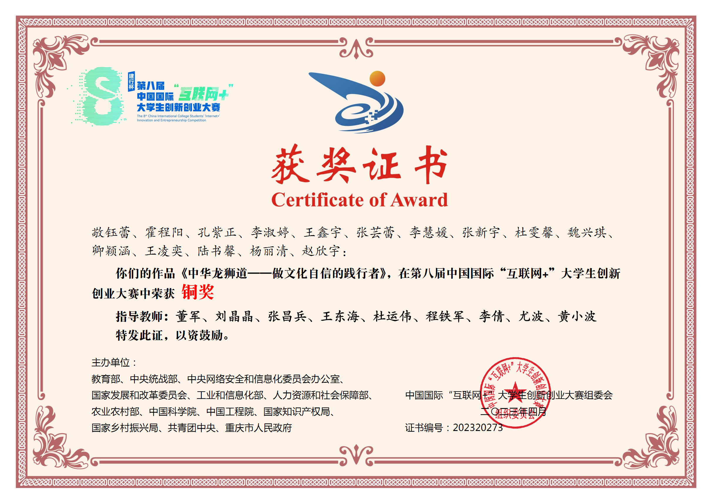 我院學(xué)生在第八屆中國(guó)國(guó)際“互聯(lián)網(wǎng)+”大學(xué)生創(chuàng)新創(chuàng)業(yè)大賽中榮獲銅獎(jiǎng)